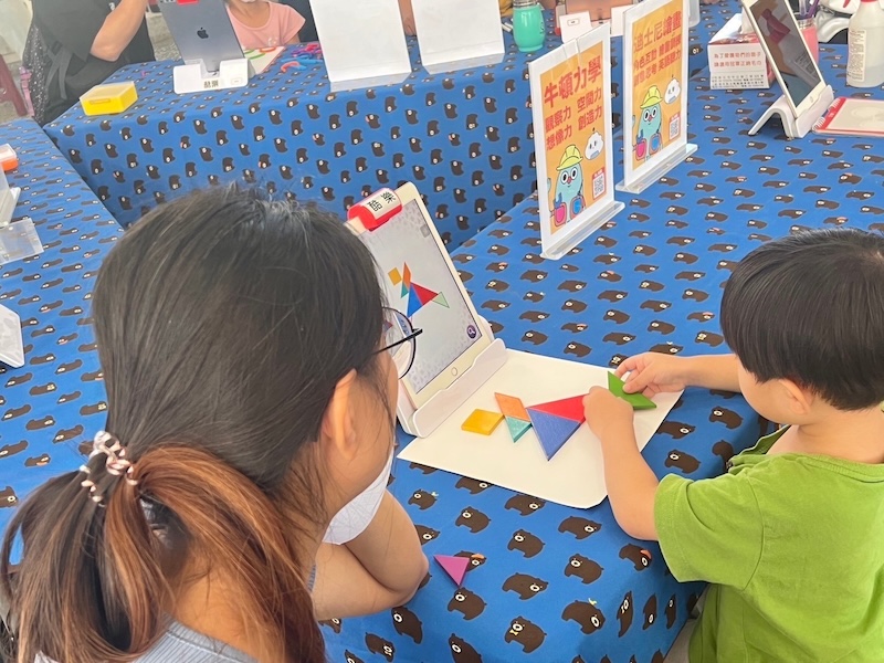 做完 DIY 不是結束,而是冒險的開始。我們準備了多關互動益智遊戲,結合數位平板與實體教具,七巧板、拼圖挑戰、邏輯配對......每一關都在遊戲的包裝下,悄悄鍛鍊孩子的空間感、專注力和問題解決能力。
